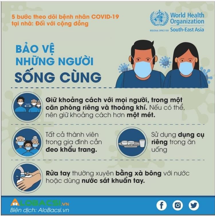 - Tránh tiếp xúc người thân tối thiểu, khoảng cách 1-2m, không nên ngồi bàn ăn cơm chung, ngủ riêng, nếu ở phòng riệng thoáng khí thì càng tốt